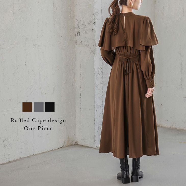 ワンピース ケープデザイン ラッフルフリル 大人フェミニン ワンピース ケープデザイン ラッフルフリル 大人フェミニン 細見え レディース おすすめ おしゃれ ブラック メール便 2025春夏新作 【lswp302-588】【即納:1-5営業日】【送料無料】メ込3
