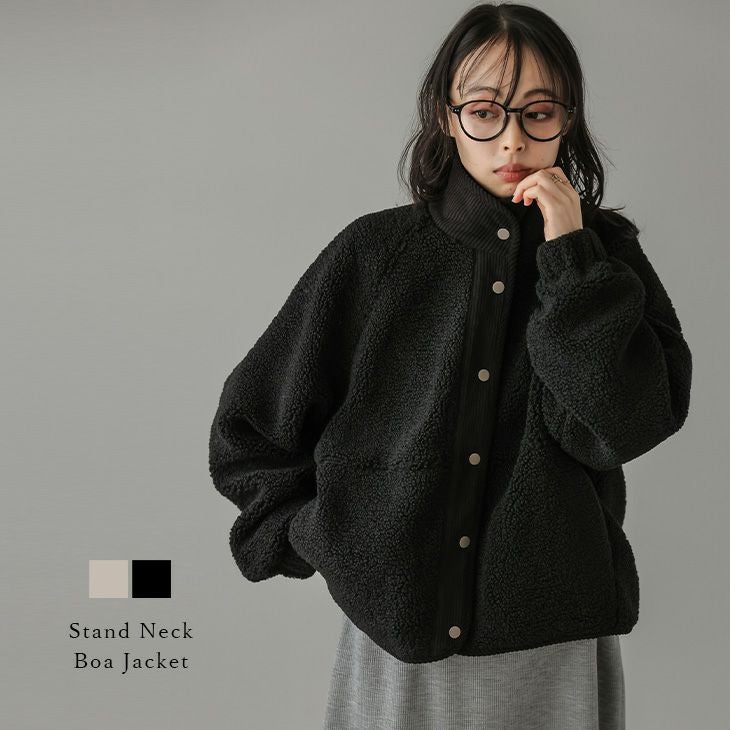 ボア スタンドネック ジャケット アウター コーデュロイ 【春夏半額SALE対象】 [AMELY by La-gemme]ボア スタンドネック ジャケット アウター コーデュロイ 異素材 もこもこ スナップボタン レディース フリーサイズ 2025春夏新作 【aotaw24-774】【即納:1-5営業日】【送料無料】宅込