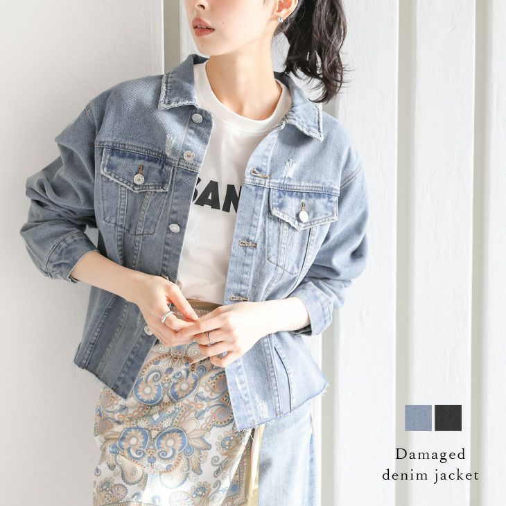 デニムジャケット ヴィンテージライク ダメージ加工 【春夏半額SALE対象】 [AMELY by La-gemme]デニムジャケット ヴィンテージライク ダメージ加工 定番 抜け感 ショート丈 アウター レディース おすすめ おしゃれ 2025春夏新作 【aotss25-1017】【即納:1-5営業日】【送料無料】60込