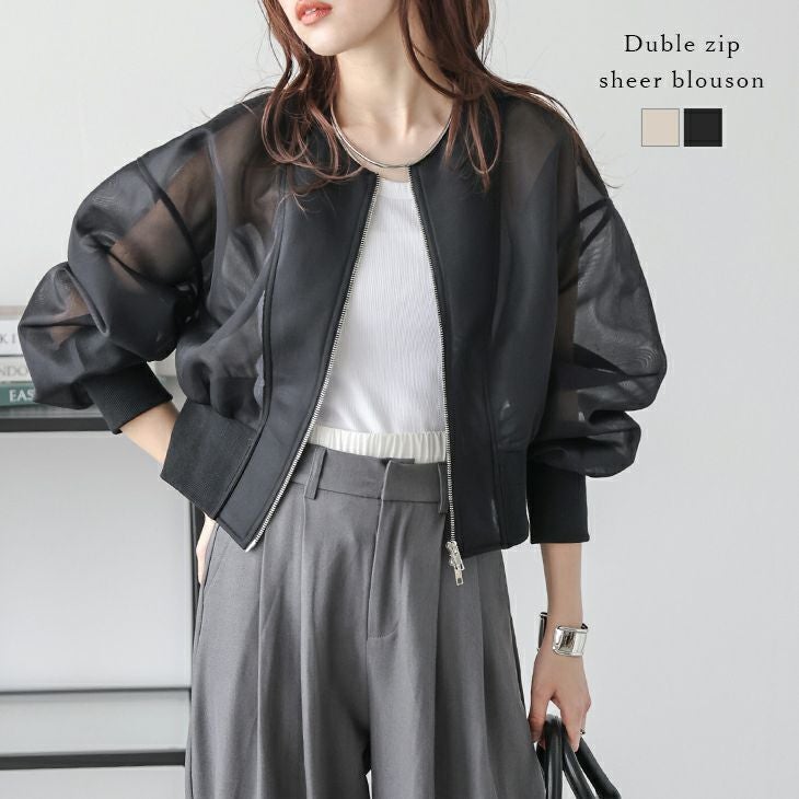 シアーブルゾン メッシュ素材 ショート丈 ダブルジップ 【春夏半額SALE対象】 [AMELY by La-gemme]シアーブルゾン メッシュ素材 ショート丈 ダブルジップ ノーカラージャケット 透け感 アウター 冷房対策 日焼け対策 レディース 2025春夏新作 【aotss25-1209】【即納:1-5営業日】【送料無料】メ込2
