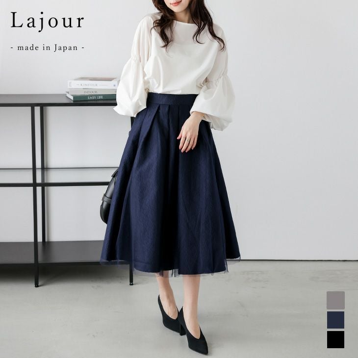 日本製 スカート フレアスカート チュール ジャガード 【春夏半額SALE対象】 [Lajour mada in Japan] 日本製 スカート フレアスカート チュール ジャガード 上品 華やか レディース おすすめ おしゃれ ラジュール フリーサイズ 2025春夏新作【laj-sk065】【即納:1-5営業日】【送料無料】60込
