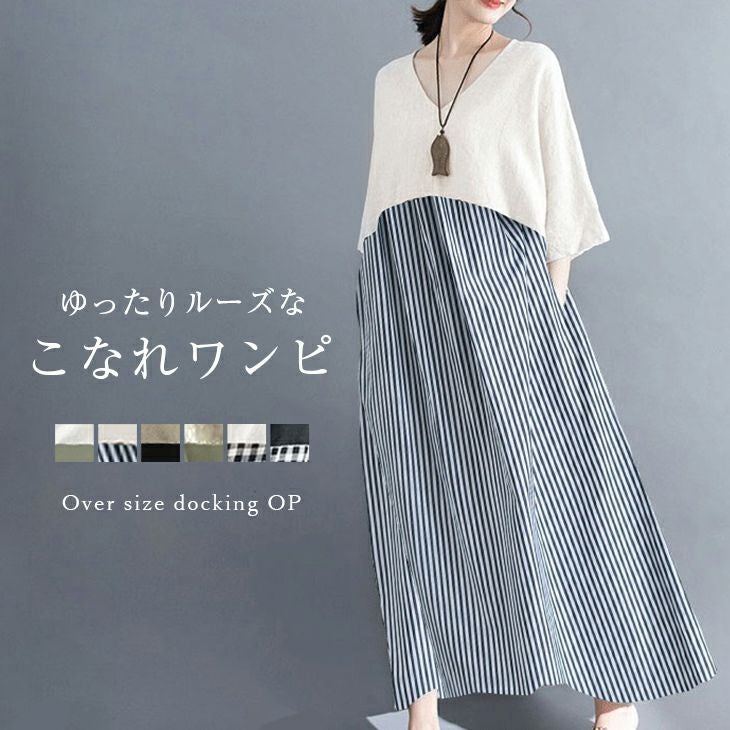 オーバーサイズ ドッキング ワンピース レディース マキシ丈 【春夏半額SALE対象】 オーバーサイズ ドッキング ワンピース レディース マキシ丈 ロング丈 ゆったり 楽ちん 2025春夏 【lgww-at4530】【即納:1-5営業日】【送料無料】ユ込3
