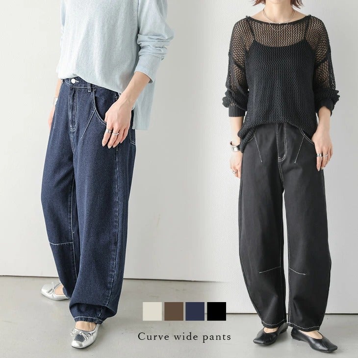 カーブパンツ ワイド デニム コットンパンツ こなれ感 【春夏半額SALE対象】 カーブパンツ ワイド デニム コットンパンツ こなれ感 抜け感 ゆるカジ Lサイズ 大人カジュアル 体型カバー レディース おすすめ おしゃれ 2025秋冬新作【lsbtaw25-1755】【即納:1-5営業日】【送料無料】宅込