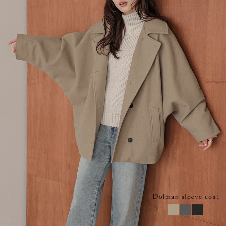ショートコート ドルマンスリーブ レギュラーカラー 襟付き 【春夏半額SALE対象】 ショートコート ドルマンスリーブ レギュラーカラー 襟付き ショート丈 ウールライク 秋冬アウター レディース 2025秋冬新作 【lsotaw25-1767】【即納:1-5営業日】【送料無料】宅込