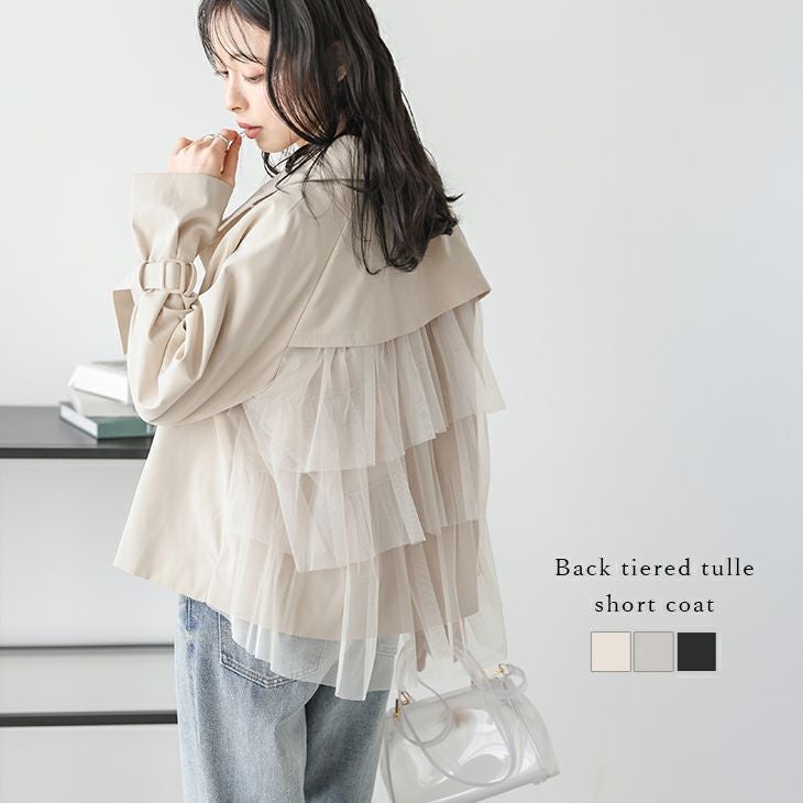 ショートコート バックコンシャス ティアード トレンチコート 【春夏半額SALE対象】 ショートコート バックコンシャス ティアードフリル チュール トレンチコート ショート丈 春アウター レディース おすすめ おしゃれ フリーサイズ メール便 2025春夏新作 【lsotss25-1080】【即納:1-5営業日】【送料無料】メ込2