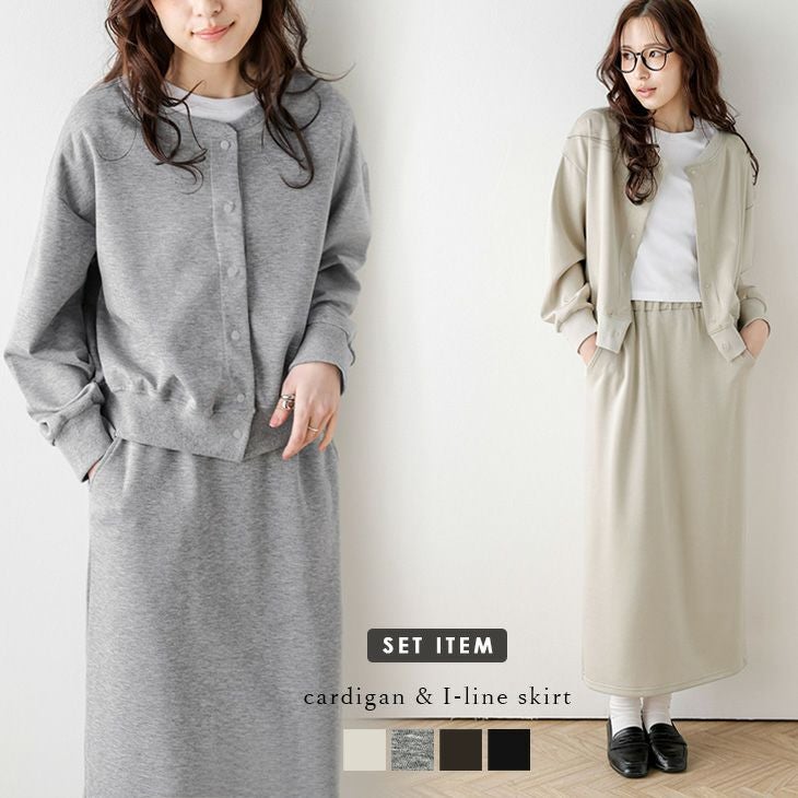 クルーネック カーディガン スカート セットアップ 【春夏半額SALE対象】 クルーネック カーディガン Iラインスカート セットアップ 長袖 スナップボタン 細見え ウエストゴム スリット キレイめ レディース おすすめ おしゃれ 2026春夏新作【lssess26-1940】【予約販売:4月2日入荷予定順次発送】【送料無料】宅込