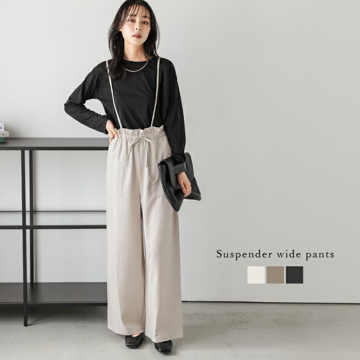 サスペンダー ワイド ハイウエスト フリル リボン 【春夏半額SALE対象】 サスペンダーパンツ ワイドパンツ ハイウエスト フリル リボン スタイルアップ 大人可愛い レディース おすすめ おしゃれ メール便 2025春夏新作【lssrss25-989】【即納:1-5営業日】【送料無料】メ込2