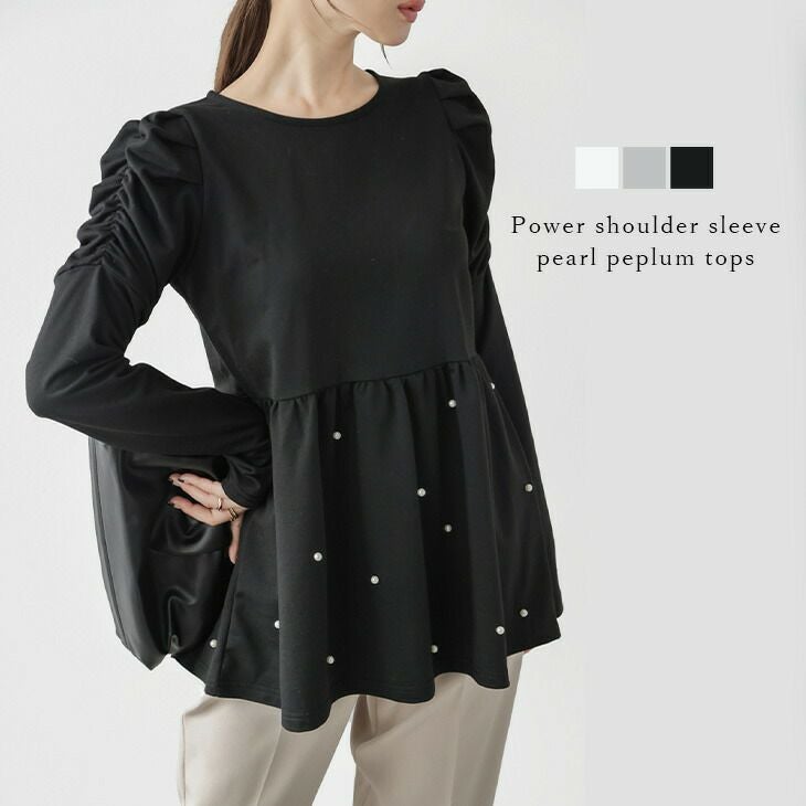 パワーショルダー ボリュームスリーブ パール付き ペプラム フレア 【春夏半額SALE対象】 パワーショルダー ボリュームスリーブ パール付き ペプラム フレア レディース おすすめ おしゃれ ブラック メール便 2025春夏新作 【lstp308-356】【即納:1-5営業日】【送料無料】ユ込3