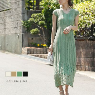 透かし編み ワンピース レディース ロング インナー付 キャミワンピ付 Vネック サマーニット ニットワンピ ペチワンピ きれいめ 大人 キレイめ メール便 2025春夏 M/L【lgww-at3092】【即納:1-5営業日】【送料無料】メ込4のレビュー