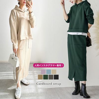 【秋冬半額SALE対象】 cestmignon_mau様愛用!絶賛発売中!発売開始で30,000枚突破!ダンボール セットアップ スカート レディース 上下セット 大人カジュアル フード タイトスカート パーカー ウエストゴム トップス ボトムス 【lgww-at4456】【即納:1-5営業日】【送料無料】60込のレビュー
