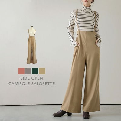 サイドオープン サロペット レディース キャミサロペ キャミパンツ オールインワン 楽ちん ワイドパンツ ゆったり 体型カバー ボトムス ポケット 2025秋新作 M/L 【lgww-at4822】【即納:1-5営業日】【送料無料】メ込2のレビュー
