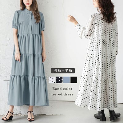 【春夏半額SALE対象】 ティアードワンピース パフスリーブ 長袖 バンドカラー 揺れる レディース ゆったり 体型カバー おすすめ おしゃれ ブラック メール便 2025春夏新作 【lswp302-53a】【即納:1-5営業日】【送料無料】メ込3のレビュー