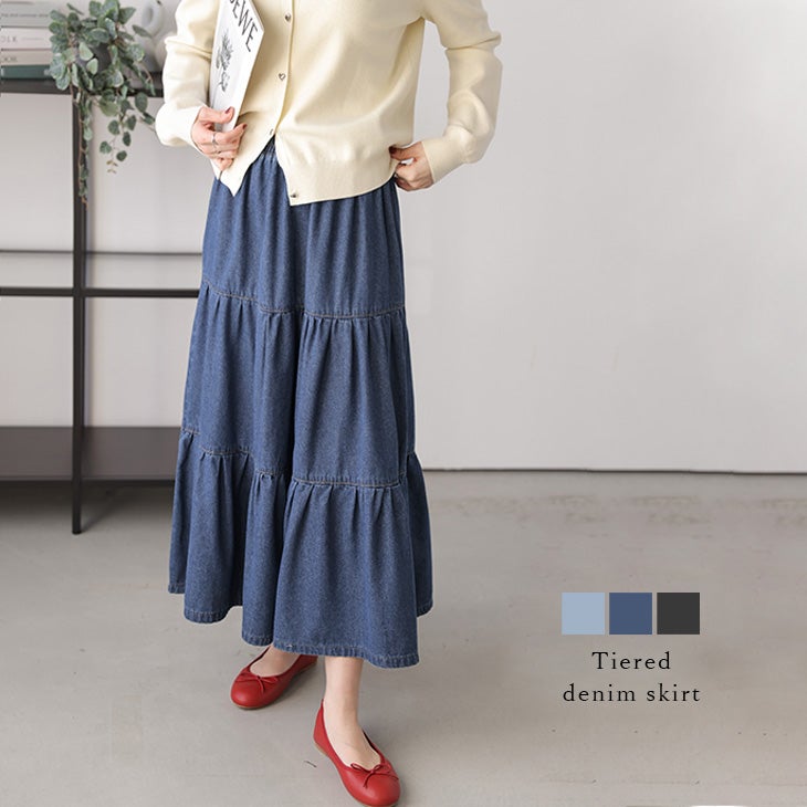 他の画像を見る スカート デニム ティアード 体型カバー カジュアル 【春夏半額SALE対象】 スカート デニム ティアード 体型カバー カジュアル ウエストゴム ライトオンス ロング丈 ボトムス レディース おすすめ おしゃれ 2025春夏新作 【lsskss25-1016】【即納:1-5営業日】【送料無料】宅込 通常 ¥ 6,980 のところ ¥ 3,480 税込 詳細を見る お気に入りに登録する